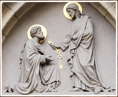 In the kingdom of David, kings delegated their authority to a chief steward, who governed in the king’s absence. This delegation of power was formally recognized through the presentation of the keys to the kingdom, symbolizing the steward’s role as the “keeper of the keys.” The chief steward, also known as a vizier or vicar, held a position of great authority, second only to the king, overseeing the palace and having the power to pass judgment on the king’s subjects. In his mission to restore the kingdom of David, Jesus similarly appointed a chief steward, granting him the keys to what would become the visible kingdom on Earth—the Church. He designated Peter as the leader over “the house of God,” as referenced in biblical passages such as 2 Corinthians 5:1, 1 Timothy 3:15, and 1 Peter 4:15. This appointment empowered Peter to rule and govern God’s household following Jesus’ ascension into heaven, reflecting the governance structure established in the kingdom of David.